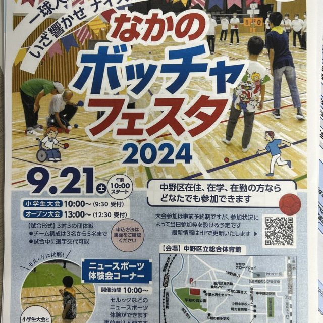 ボッチャ なかの ボッチャフェスタ 2024 2024年9月21日(土) 13:00-16:00中野区立総合体育館にてオープン大会(幼児から大人まで)に参加してきました!カタルーベの会に参加されている方ご友人、中川の知り合いなど4名で「チームNAGANO」として参加しました。結果は1勝... 2024.09.21 ボッチャ大会